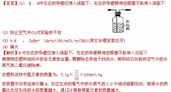 (4)若装置中没有连接装置B,将使该塑料试样中氢元素的质量测算结果 ▲ ( 填“偏小”、“ 偏大”或“无影响” )