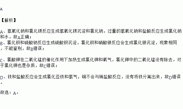 C | 除去KCl固体中的KClO3 | 加入适量的二氧化锰并加热,充分反应 |