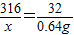 解答:解:(1)由质量守恒定律可知m(O2)=10g-9.36g=0.64g;