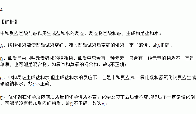 A.碱性溶液能使酚酞试液变红,滴入酚酞试液后变红的溶液一定 呈碱性