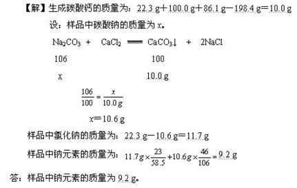 请根据下图所示的实验过程和提供的数据,计算样品中钠元素的质量。