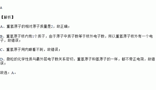 C.重氢原子用肉眼就可以看到 D.重氢原子带一个单位的正电荷