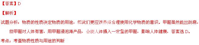 D.甲醛能使蛋白质失去生理活性,可用甲醛溶液浸泡水产品防腐