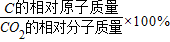 【答案】分析:先根据植物每天每平方米需吸收5g二氧化碳,则1.76平方米的叶片十天可能吸收二氧化碳为1.76×5×10g,再根据公式:某元素质量=化合物的质量×化合物中该元素的质量分数,可算出碳的质量.