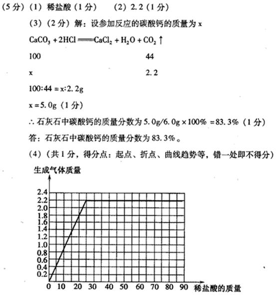 (4)石灰石样品中碳酸钙的质量分数是______.(精确到一位小数)
