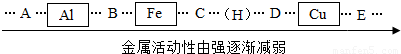 解答:解:由于铁、铝、铜三种金属的顺序是:铝、铁、铜所以按从前往后填空即可;