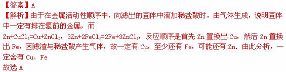 | A.Cu和Fe | B.Fe和Zn | C.Zn和Cu | D.Cu、Fe和Zn |