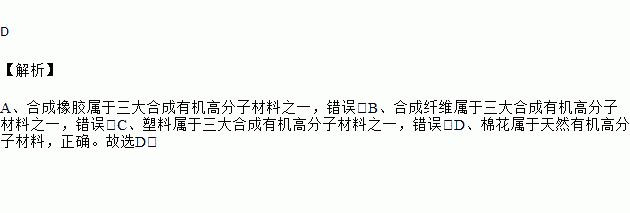 A.合成橡胶 B.合成纤维 C.塑料 D.棉花