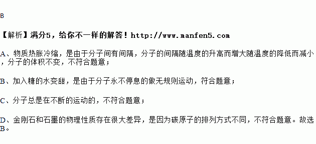 B.加入糖的水变甜,是因为分子永不停息的做无规则运动