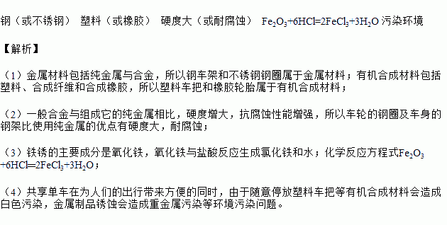 (2)车轮的钢圈及车身的钢架比使用纯金属的优点有_____(写一个即可)。
