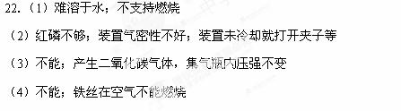 ⑵待燃烧停止,白烟消失并冷却后,打开止水夹,观察到烧杯中的水进入集气瓶,瓶内水面最终接近刻度1处。由此可知氧气约占空气总体积的1/5。由本实验还可以推测氮气的性质有 。(答两点)