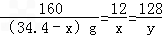 解:设木炭和氧化铜恰好反应时质量为x,则氧化铜的质量为34.4﹣x,最多能够得到铜的质量为y
