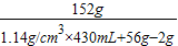 解答:解:(1)硫酸中溶质的质量:1.14g/cm3×430mL×20%=98g