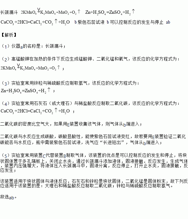 (5)实验室常用装置C代替装置B制取气体,该装置的优点是_____,下列反应适用于该装置的是_____(填序号) 。