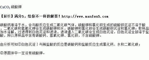 有一包白色固体,可能由氯化钾、硫酸钾、氢氧化钾、碳酸钙、氯化钡中的一种或几种物质组成,为探究该白色固体的组成,某小组取适量样品按下列流程进行实验。