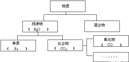 分类是学习和研究化学物质及其变化的一种常用的基本方法,请在下图方框内的括号中填上一种相应物质(属于纯净物的写化学式,但不能重复出现):