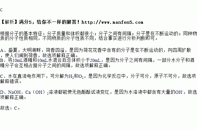 A | 盛夏,大明湖畔,荷香四溢 | 分子在不停运动 |