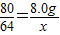 【答案】分析:利用氢气还原氧化铜制取铜的化学方程式和已知氧化铜的质量,列出比例式,就可计算出能够制得铜的质量.