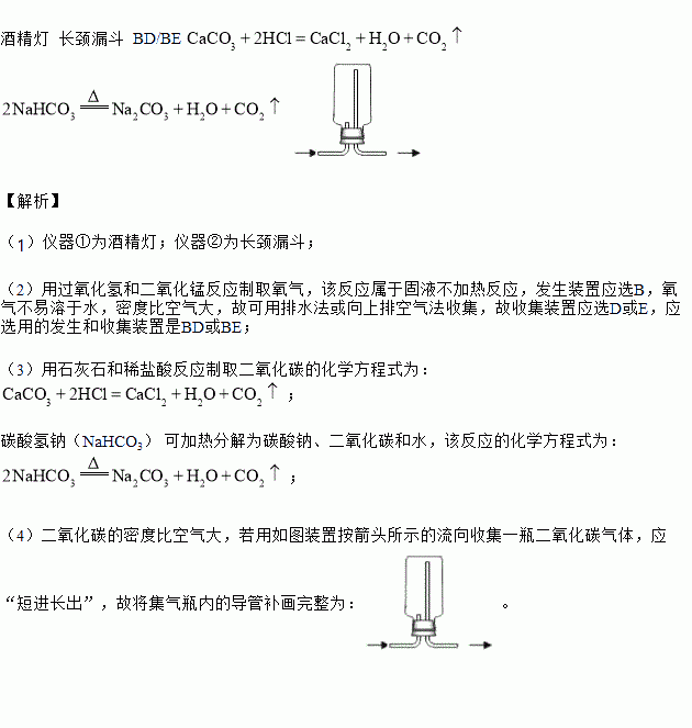 £¨3£©ÊµÑéÊÒͨ³£ÓÃʯ»ÒʯºÍÏ¡ÑÎËá·´Ó¦ÖÆÈ¡CO2£¬¸Ã·´Ó¦µÄ»¯Ñ§·½³Ìʽ_____£»´ËÍ⣬CO2¿ÉÒÔÓÃ̼ËáÇâÄÆ£¨NaHCO3£© ¼ÓÈȷֽ⣨²úÎïΪ̼ËáÄÆ¡¢¶þÑõ»¯Ì¼ºÍË®£©À´ÖÆÈ¡£¬¸Ã·´Ó¦µÄ»¯Ñ§·½³ÌʽΪ_____£»
