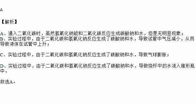 下列验证“CO2与NaOH溶液反应”的装置中,不能观察到明显现象是的(装置气密性均良好)( )