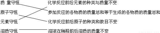 化学中有多种“守恒”,请用连线的方式找出对应的关系.质量守恒 化学反应前后元素的种类与质量不变
