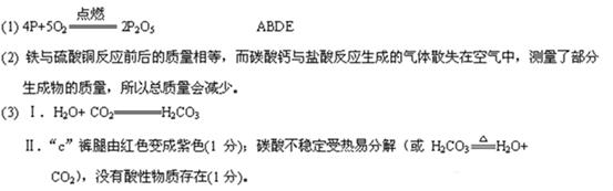 (1)图甲所示实验用于测定空气中氧气的体积分数。红磷在空气中燃烧的化学方程式是 。关于该实验的下列说法中,正确的是 (填字母序号)。