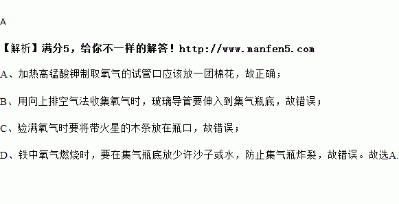 下列图示分别是实验室氧气制备、收集、验满、验证性质的操作,其中正确的是( )