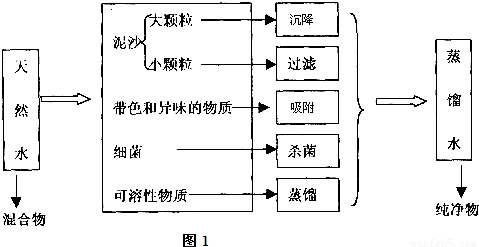 【答案】分析:(1)根据净化水的措施分析填空;