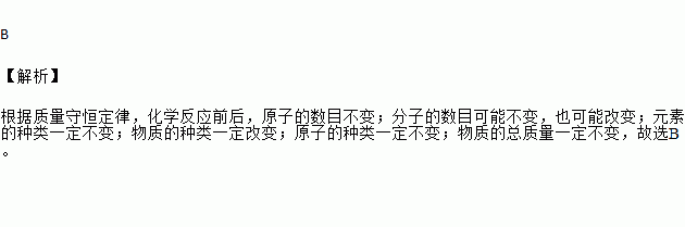 ①原子数目;②分子数目;③元素种类;④物质种类;⑤原子种类;⑥物质的总质量。