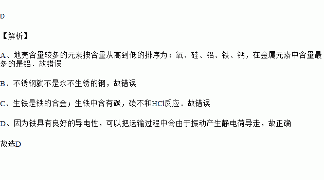 A.铁是地壳中含量最多的金属元素