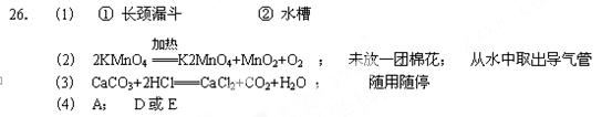 (4) 实验室用加热固体无水醋酸钠和碱石灰混合物的方法制甲烷。该实验可选用的发生装