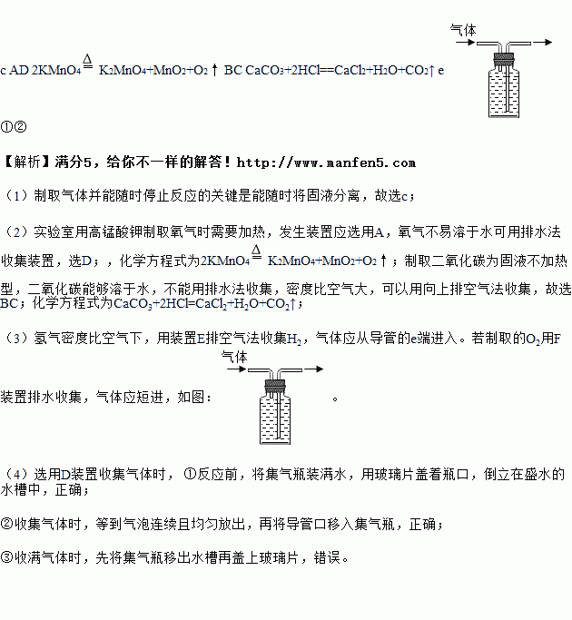 下图是实验室制取和收集气体的装置,请按要求作答:
