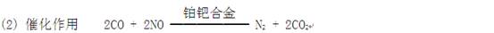 (2)汽车尾气中的CO和NO在铂钯合金表面发生反应,转化为空气中体积分数最大的气体和参与光合作用的气体。铂钯合金能加快汽车尾气中的CO和NO反应的速率,其质量和化学性质在化学反应前后均没有改变,它所起的作用是 。写出上述转化的化学方程式: 。