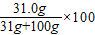 B、10℃时,KCl的溶解度为31.0g,故其饱和溶液中溶质的质量分数