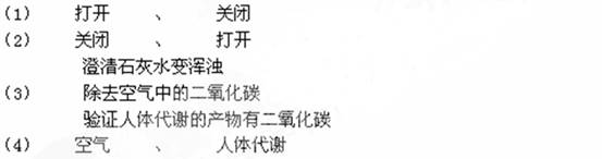 (9分)人通过肺与外界进行气体交换,吸入空气中的氧气,排出二氧化碳和水蒸气。但人体排出的二氧化碳究竟是空气中原有的,还是人体代谢的最终产物,为了证实这个问题,有人采用了右图装置进行实验。
