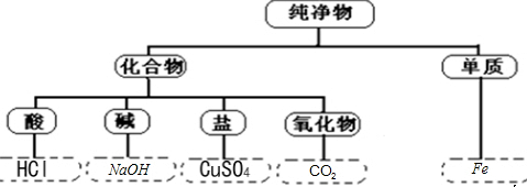 (1)分类是学习和研究物质及其变化的一种常用方法.分类要有一定的标准,按照物质的组成对六种物质进行分类,请将属于下列分类结果的物质的化学式填写在下面的虚线框内