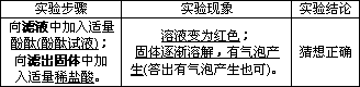 ②小华想用碳酸钠溶液来验证后两种猜想,请你帮他完成实验,填写以下表格: