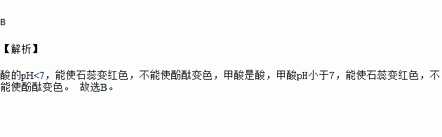 C.甲酸溶液能使紫色石蕊试液变红色 D.甲酸溶液不能使无色酚酞试液变色