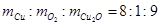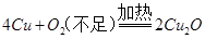 【解析】甲减少16g,丙增加20g,丁减少4g,所以甲与丁是反应物,丙是生成物,甲丁减少的质量之和等于丙增加的质量。可判断乙前后质量不变,为催化剂或者溶剂(如水、汽油等)。反应中甲与丙的质量比为4:5。铜与氧气反应在氧气不足时会生成氧化亚铜,反应方程式为