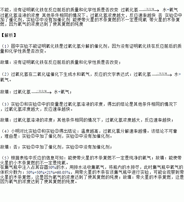 £¨1£©Í¼ÖÐʵÑéÄÜ·ñÖ¤Ã÷Ñõ»¯ÌúÊǹýÑõ»¯Çâ·Ö½âµÄ´ß»¯¼Á£¿²¢ËµÃ÷ÀíÓÉ£º____________¡£
