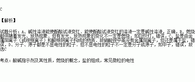 A.碱性溶液能使酚酞试液变红.能使酚酞试液变红的溶液一定是碱性溶液