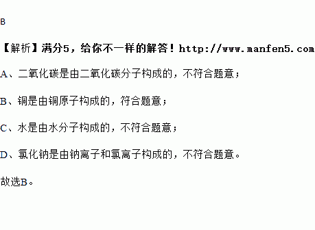 A.二氧化碳 B.铜 C.水 D.氯化钠
