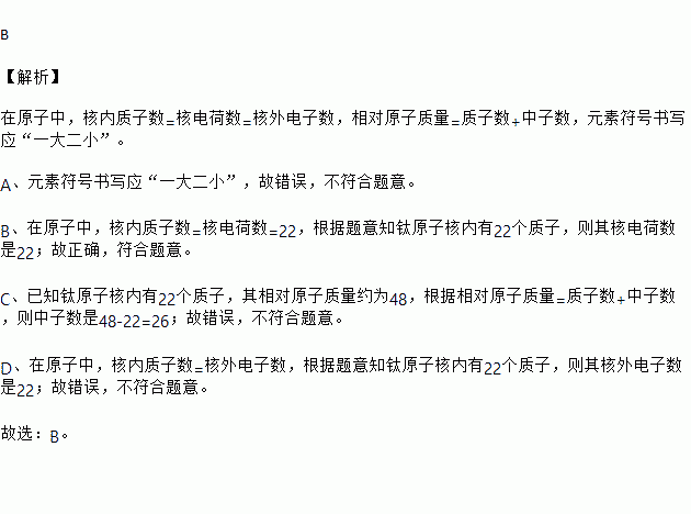 钛被认为是21世纪的重要金属材料,钛原子核内有22个质子,相对原子质量为48,则下列有关说法正确的是