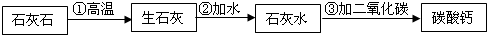 (3)碳酸钙能高温分解生成氧化钙和二氧化碳,氧化钙能与水反应生成氢氧化钙,氢氧化钙能与碳酸钠发生复分解反应生成碳酸钙和氢氧化钠,所以本题答案为: