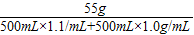 500mL×1.1g/mL×10%=55g
