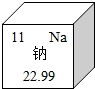 A.钠原子最外层有11个电子 B.钠的相对原子质量是22.99g