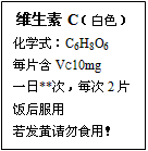 人体缺乏维生素C(简写“Vc”)就会患坏血病,哥伦布探险时的许多船员就因此而死亡。下图所示为某种“维生素C”说明书的一部分。请你回答: