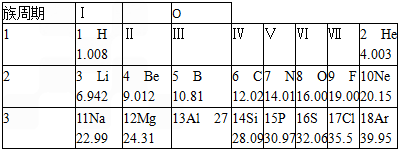 元素周期表是化学学习和研究的重要工具.如图是元素周期表的一部分.
