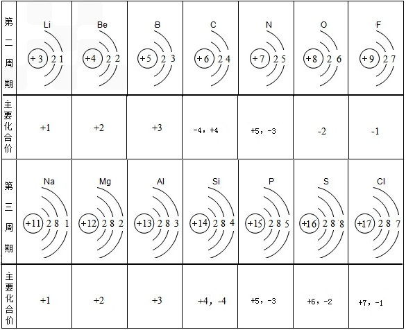 (4)请你总结出此表中的原子结构与元素化合价或周期数的关系