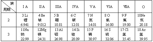 元素周期律和周期表是学习化学的重要工具,下表是元素周期表的部分信息。